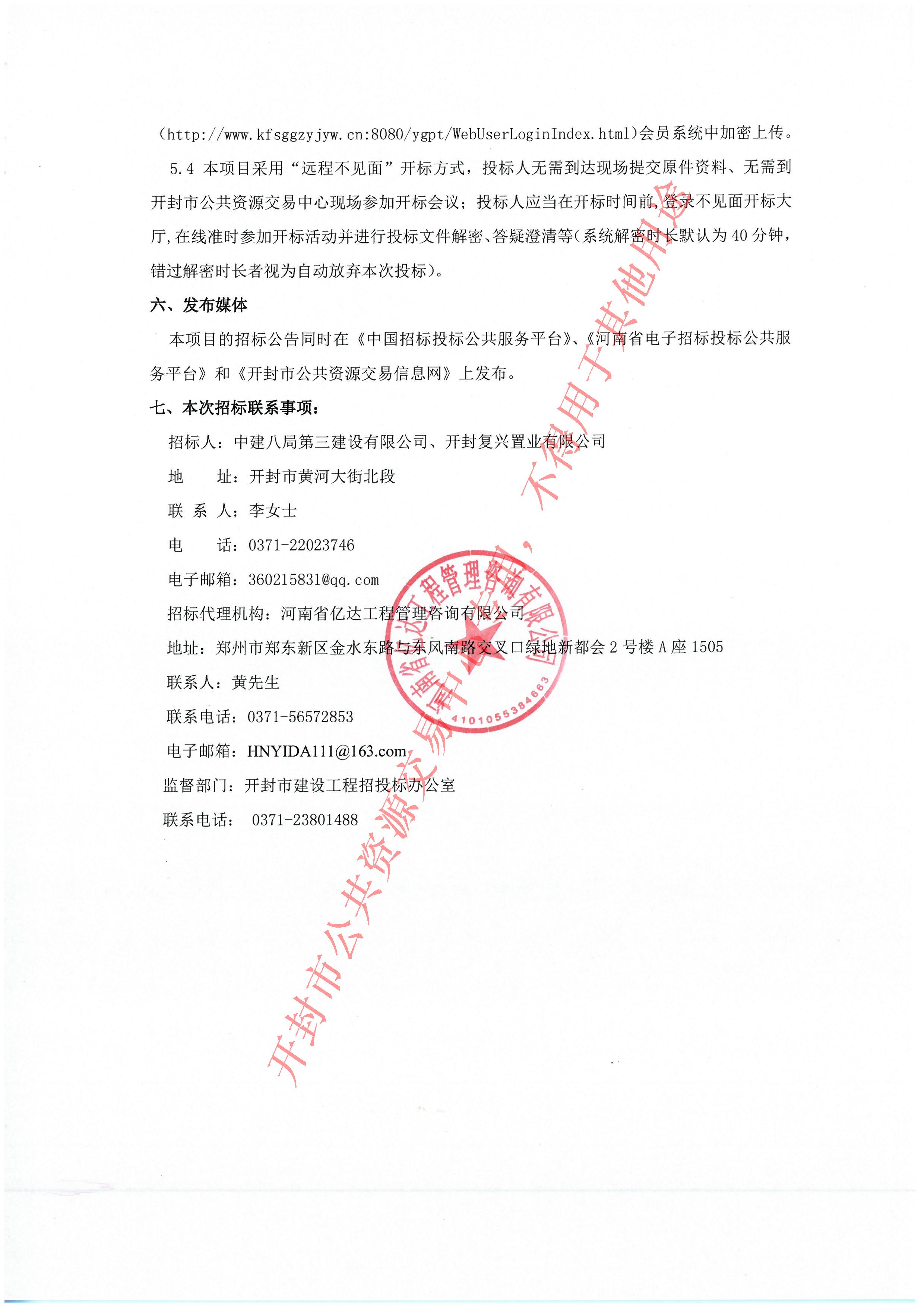 招标人:中建八局第三建设有限公司、开封复兴置业有限公司